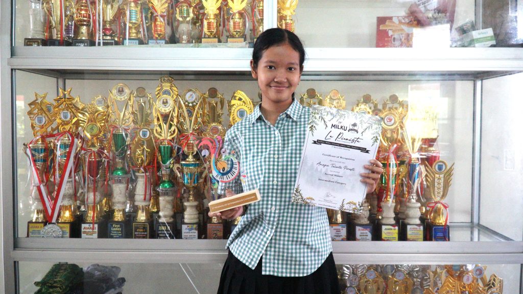 Amazia Talenta Pinasti, siswa Sekolah Menengah Pertama (SMP) Kristen Satya Wacana terus bersinar dalam dunia musik dengan memenangkan kompetisi piano tingkat nasional. Lagu berjudul “Sonatine Op. 55 No.3” karya Friedrich Kuhlau mengantarkan siswa kelas IX ini meraih Second Winner in Intermediate Category pada La Pianista Piano Competition 2024 di Aston Inn Pandanaran Semarang, belum lama ini.