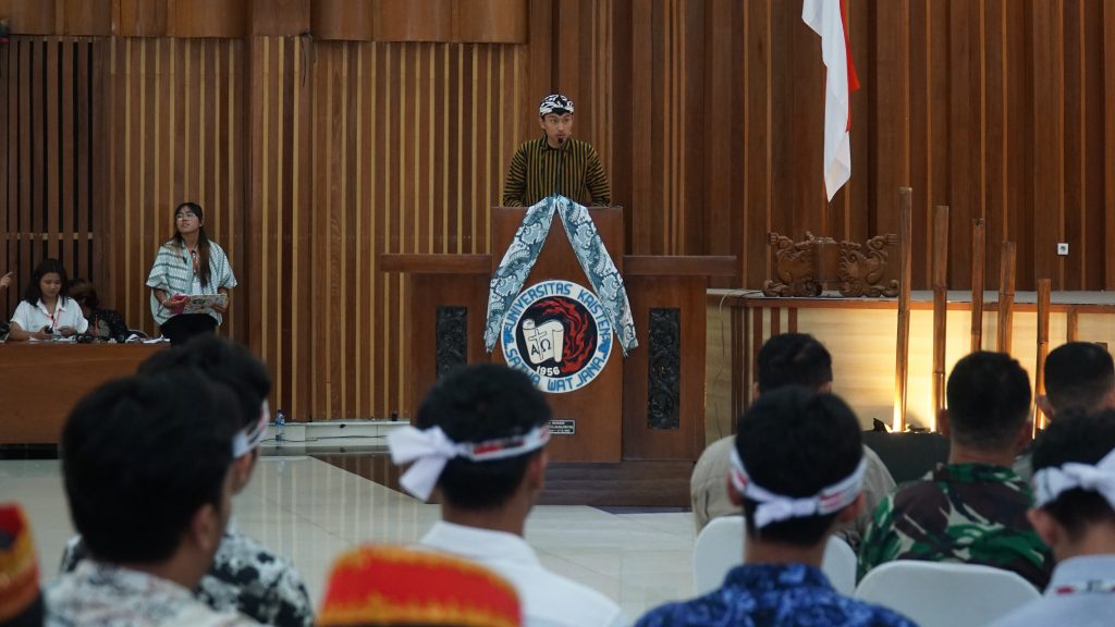 Seminar nasional bertajuk “Unity in Diversity: Harmoni Antara Warisan Budaya Lokal dan Internasional” mengawali rangkaian kegiatan Indonesian International Culture Festival (IICF) 2024 Universitas Kristen Satya Wacana (UKSW), pada Kamis (06/06/2024) di Balairung Universitas. Tahun ini, kegiatan IICF 2024 yang diinisiasi oleh Senat Mahasiswa Universitas (SMU) UKSW mengangkat tema “Bersatu untuk Indonesia”.