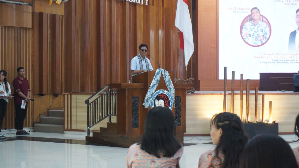 Dr. (Cand.) Gracia Josaphat Jobel Mambrasar menekankan bahwa generasi muda harus mencintai keberagaman dan kekayaan budaya Indonesia. “Semakin kaya budaya kita, maka semakin banyak inovasi yang dihasilkan, ini menjadi kekuatan kita,” paparnya.