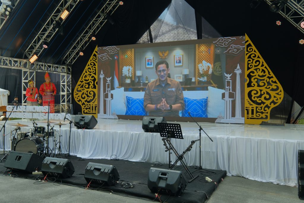 Keynote speech secara daring juga disampaikan oleh Menteri Pariwisata dan Ekonomi Kreatif Dr. H. Sandiaga Salahuddin Uno, B.B.A., M.B.A., yang menuturkan bahwa di era globalisasi dan digitalisasi yang berkembang pesat, kepemimpinan kreatif dan inovatif menjadi kunci utama menghadapi berbagai tantangan. Industri kreatif adalah sektor potensial di Indonesia berkat keberagaman budaya dan kekayaan sumber daya manusia (SDM).