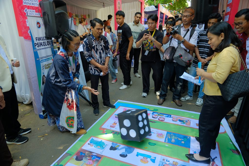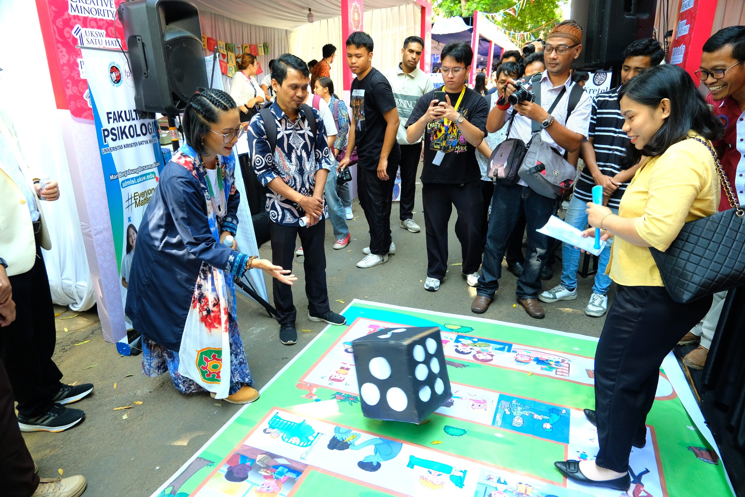 Di sepanjang area acara, puluhan stand berjajar dihiasi dengan aksesoris etnis yang mencerminkan kekayaan budaya Nusantara, ciri khas Kampus Indonesia Mini. Dengan total 100 stand yang menggugah rasa ingin tahu, menampilkan berbagai inovasi, mulai dari teknologi mutakhir hingga produk kreatif dari UKSW dan universitas lainnya.