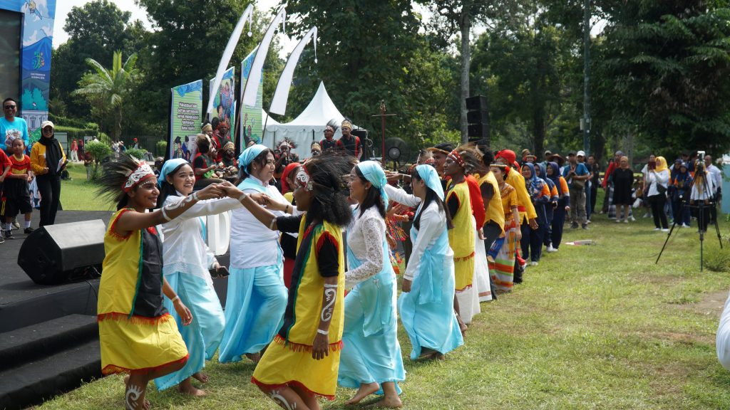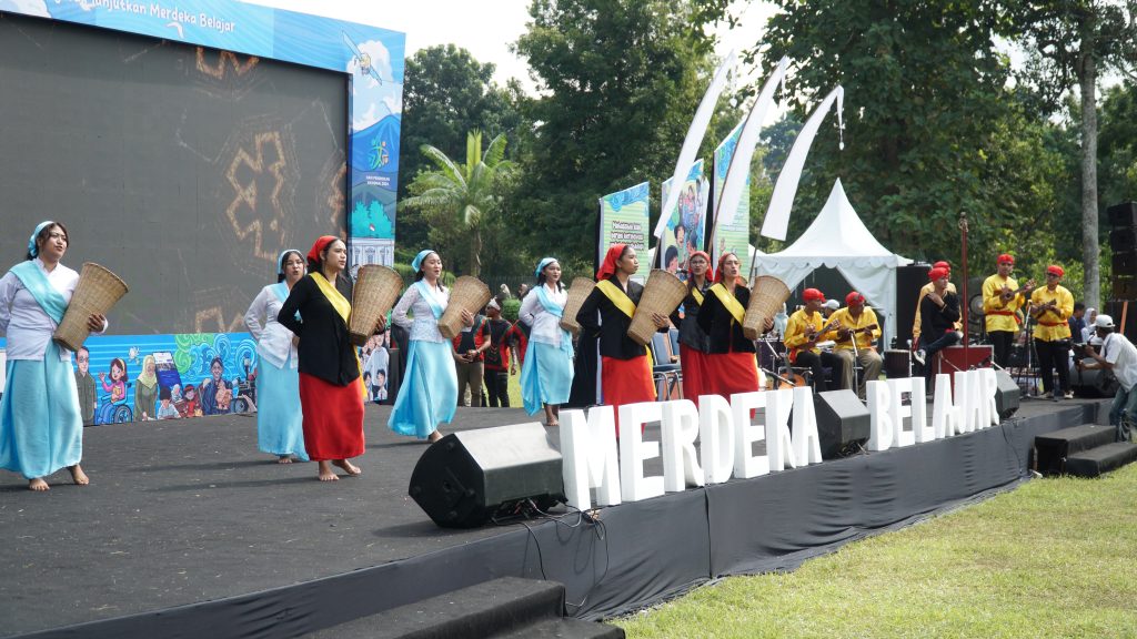 Pesona Etnis Indonesia Mini Universitas Kristen Satya Wacana (UKSW) menambah kemeriahan gelaran Festival dan Pameran Merdeka Belajar 2024, Minggu (26/05/2024). Tiga kelompok etnis dari UKSW menampilkan tarian etnis dan juga kolaborasi menambah semarak acara yang digelar di Taman Aksobya Kawasan Candi Borobudur, Magelang.