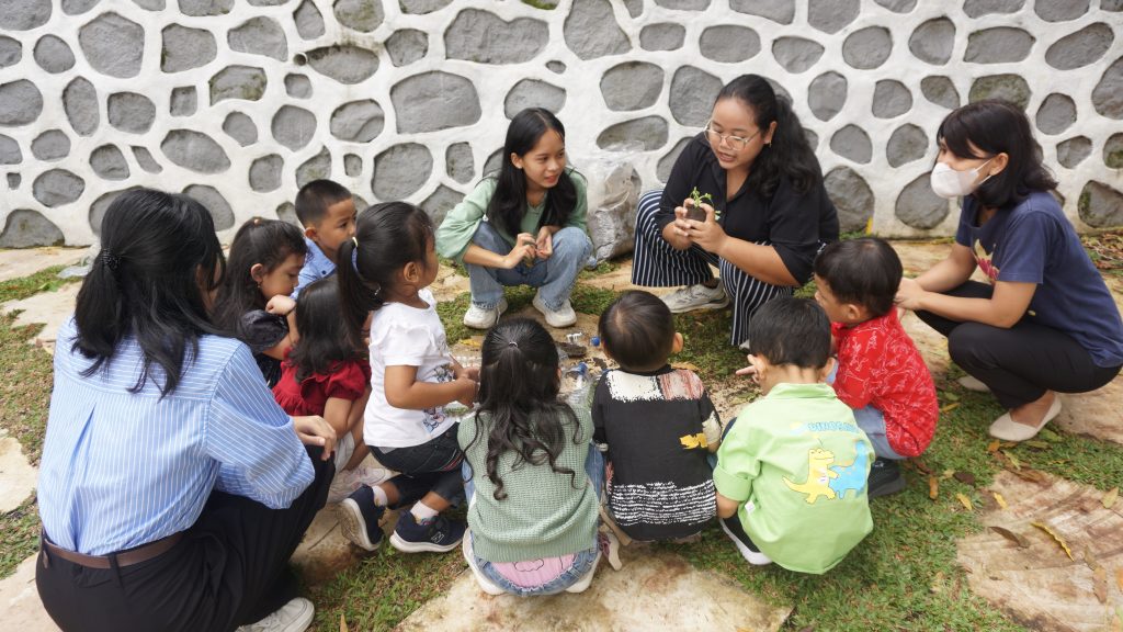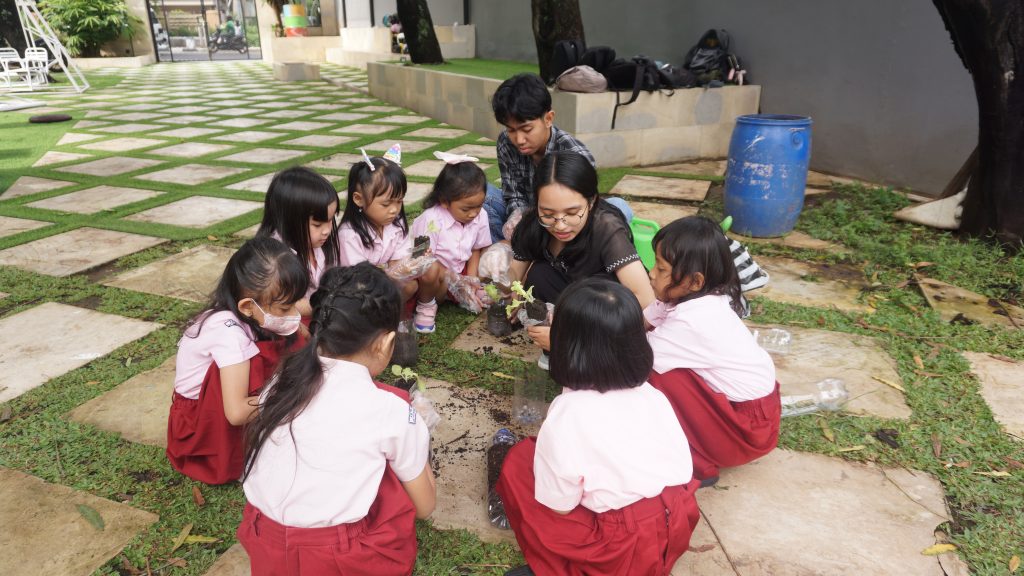 Bagi anak-anak yang berpartisipasi, kegiatan Planting Time ini menjadi pengalaman yang menyenangkan dan berkesan. Veodora Jeselyn, salah satu peserta dari kelompok TK Besar, dengan riang mengatakan, “Senang sekali! Tadi aku kasih tanah di botol bekas, buka plastik, tanam, terus disiram biar tumbuh,” ceritanya dengan semangat.