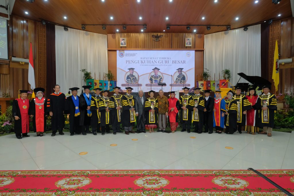 Disampaikannya, gelar Guru Besar memiliki tanggung jawab yang besar pula terhadap institusi. Guru Besar diharapkan dapat menjadi leader akademis, teladan integritas, serta dapat meningkatkan kualitas pendidikan di Indonesia. “Terima kasih UKSW yang telah menjaga eksistensi ilmu sebagai bagian perubahan zaman, merangkul lapisan masyarakat sehingga terwujud miniatur kecil di Kota Salatiga,” pungkasnya.
