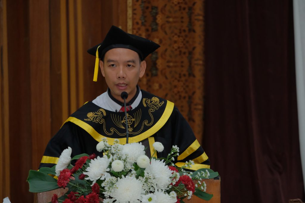Prof. Yafet Yosafet Rissy, S.H., M.Si., Ph.D., LLM (AFHEA)., menyampaikan pidato ilmiah berjudul “Analisis Ekonomi Terhadap Hukum Paten di Indonesia”. Lahir di Kota Betun Malaka Nusa Tenggara Timur (NTT), ia memulai kiprahnya sebagai pengajar di FH UKSW pada 2002.