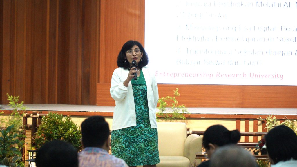Dalam workshop ini, Profesor Hanna mengajak para peserta untuk memahami peran penting AI dalam mendukung transformasi dunia pendidikan, sekaligus menghadirkan ruang diskusi interaktif bagi para peserta.