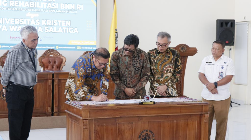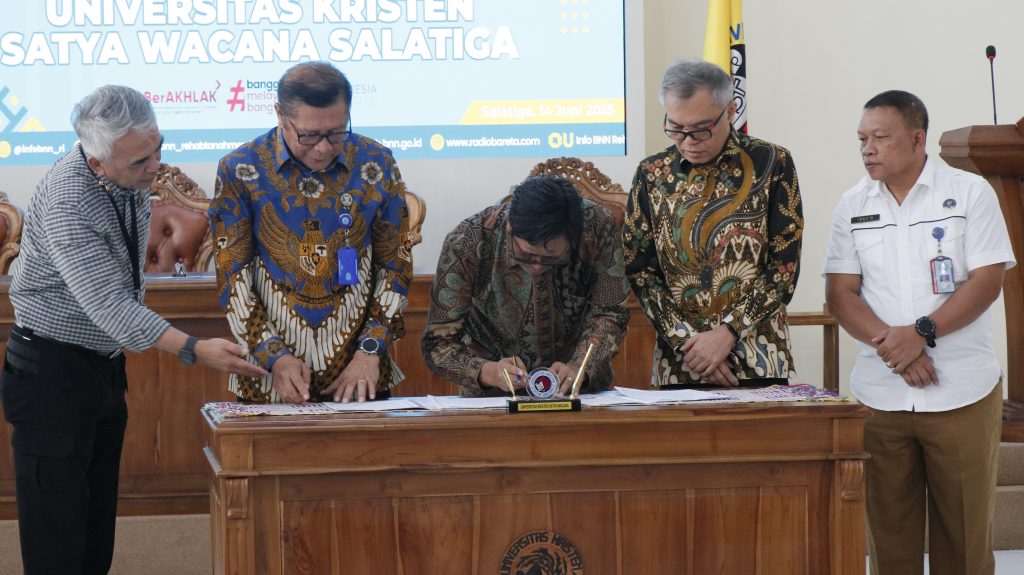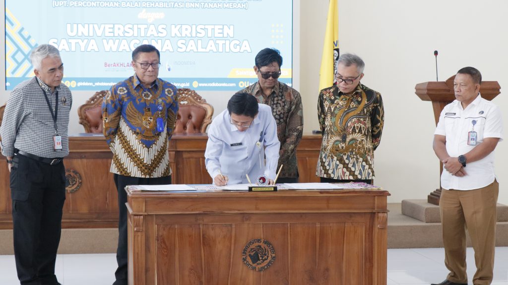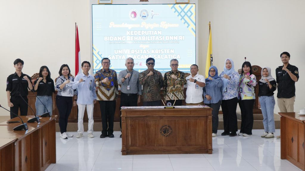 Sebagai bagian dari langkah strategis membangun masa depan bangsa yang bersih narkoba, Universitas Kristen Satya Wacana (UKSW) resmi menjalin kerja sama dengan Deputi Bidang Rehabilitasi Badan Narkotika Nasional (BNN) Republik Indonesia (RI) melalui Unit Pelaksana Teknis (UPT) Percontohan Balai Rehabilitas BNN Tanah Merah, Kalimantan Timur. Momen membanggakan ini berlangsung di Ruang Grha Kartini, Sabtu (14/06/2025).
