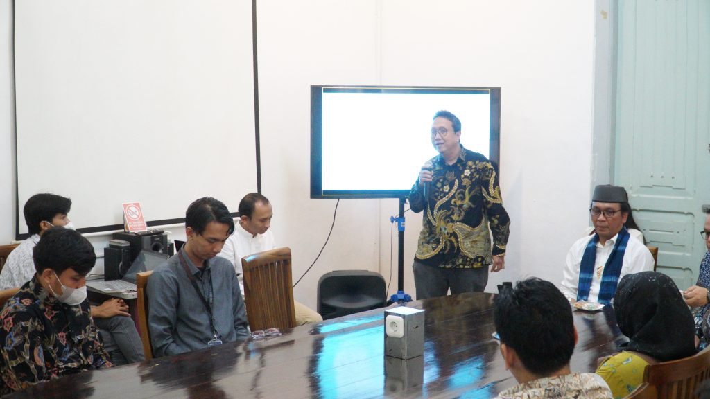Universitas Kristen Satya Wacana (UKSW) menjamu kunjungan studi banding dari Universitas Prasetiya Mulya (Prasmul) dan Universitas Islam Internasional Indonesia (UIII) terkait pengembangan infrastruktur teknologi informasi (TI) UKSW, Senin (25/09/2023). Wakil Rektor Bidang Keuangan, Infrastruktur dan Perencanaan (KIP) UKSW Priyo Hari Adi, S.E., M.Si., Ph.D., Ak., menerima secara langsung delegasi Universitas Prasmul dan UIII di Rumah Noto.