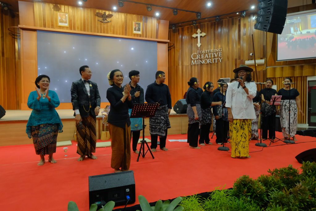 Menurutnya, mahasiswa tidak harus selalu turun ke jalan untuk menunjukkan sikap kritis. “Di UKSW ini, saya melihat mahasiswa yang berpikir kritis tanpa perlu ramai. Budaya punya jalannya sendiri,” ujar pria yang telah menuangkan daya kritisnya ke dalam desain 14 lembar kain sarung yang dikenakan mahasiswa UKSW, yang turut mengiringi nyanyian sepanjang acara berlangsung. Ia menutup refleksinya dengan menyentuh persoalan cinta yang dalam: “Cinta sejati adalah memberi tanpa syarat. Seperti ibu yang menitipkan doa dalam selembar kain untuk anak-anaknya.”