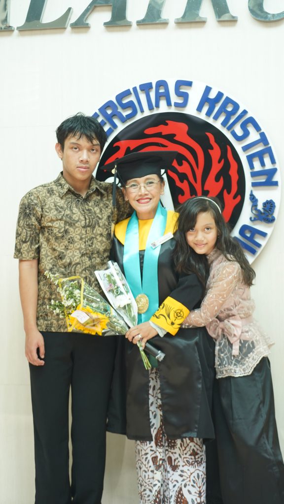 “Setiap Jumat jam tiga sore dan Sabtu jam delapan pagi sudah harus sampai Satya Wacana. Saya harus menempuh jarak dua jam perjalanan, laju, dari Semarang ke Salatiga dan membawa kedua anak saya demi mengikuti kuliah. Saat kuliah berlangsung, anak-anak dengan sabar menunggu saya di luar kelas,” ungkapnya.