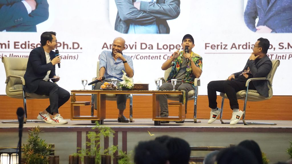 Dalam acara ini, tiga sosok dengan latar belakang yang berbeda namun memiliki semangat yang sama, Diaspora dan Ilmuwan Neurosains di Institute for Leadership, Innovation, and Advancement Universiti Brunei Darussalam dr. Rizki Edmi Edison, Ph.D, Influencer dan Content Creator Andovi Da Lopez, dan Vice President Strategic Business Development Group PT INTI PERSERO Feris Ardianto, S.Mn., RFP., CIBA., dihadirkan. Dimoderatori Timothy Marbun, ketiganya berbicara mengenai perjalanan mereka dan memberikan motivasi yang mendalam bagi para peserta.